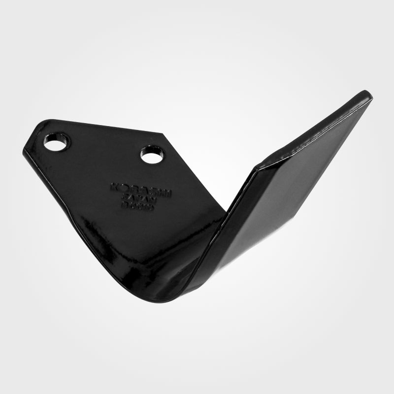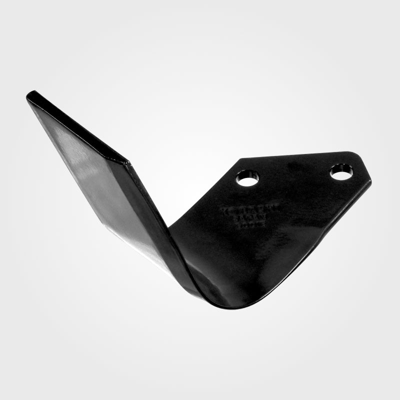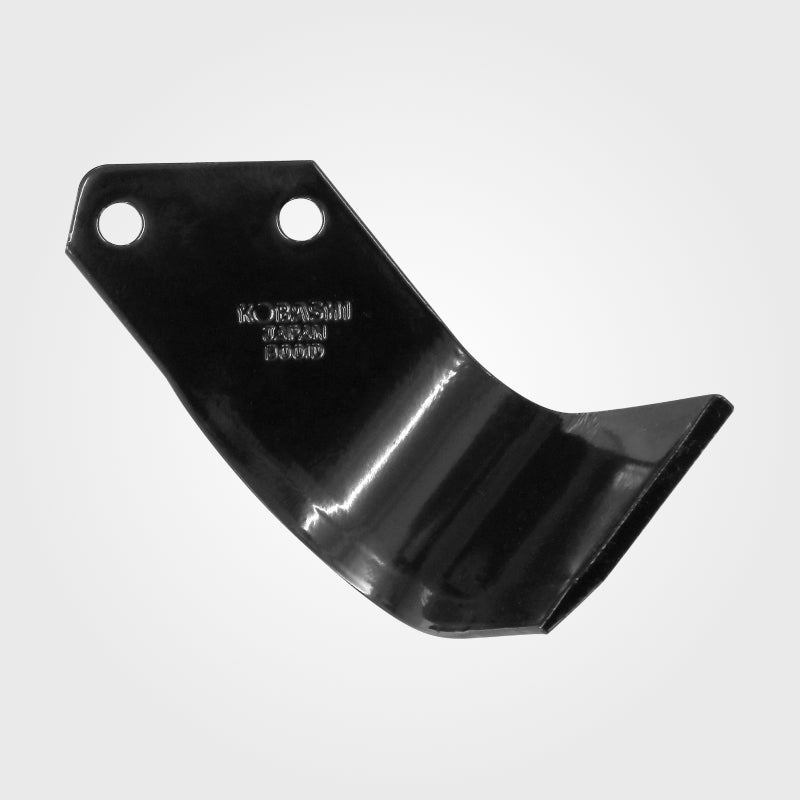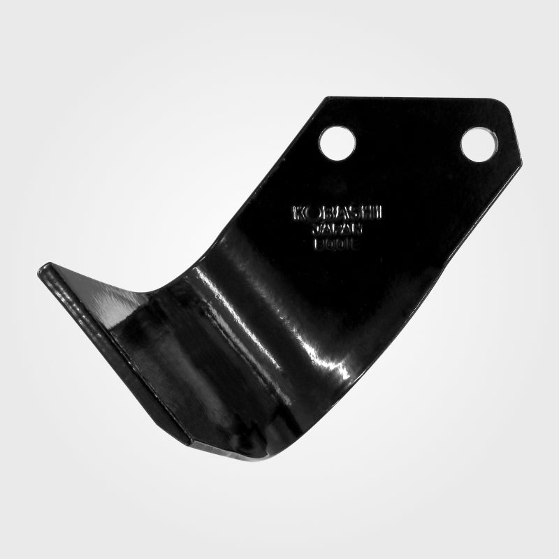 Lâmina de 02 furos, tipo flange, para enxada rotativa. Produzida com aço mais resistente do mercado (SUP6), o mesmo utilizado em molas de automóveis e caminhões.